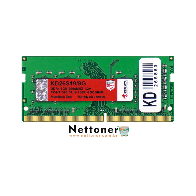 - Memória RAM KeepData DDR4 8GB 2666MHz para Notebook