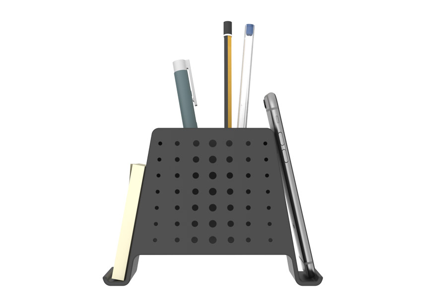 Projetado para que você possa apoiar seu smartphone de um lado e notas adesivas do outro.